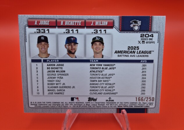 2026 Topps Series 1 Purple American League Leaders 204 Judge Bichette Wilson 17…