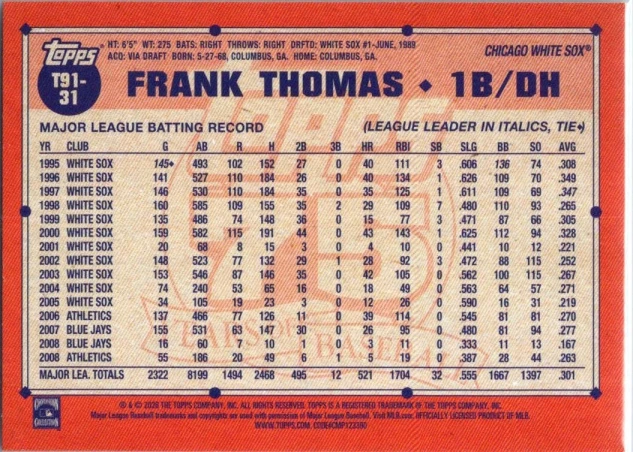2026 Topps #T91-31 Frank Thomas 1991 Topps Baseball 35th Anniversary Pink (s1)