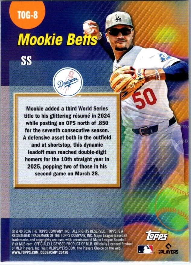 This is a nice example of a 2026 Topps #TOG-8 Mookie Betts Titans of the Game