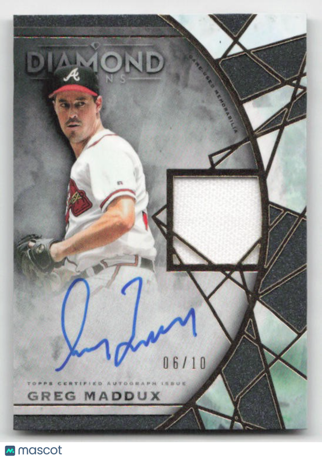 You are purchasing a 2022 Topps Diamond Icons - Single-Player Autographed Relics Greg Maddux #SPA-GMA SN MEM AU 6/10. You will receive the exact item in the photographs. Thank you for looking.
