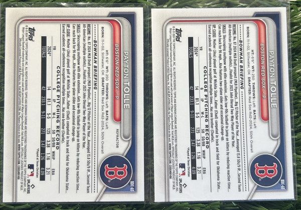 2x Lot Payton Tolle 1st Bowman. 1 Refractor