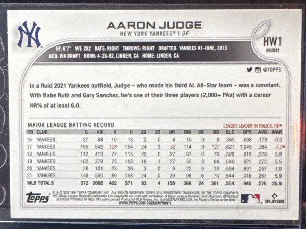 Aaron Judge 2022 Topps Holiday HW1 New York Yankees