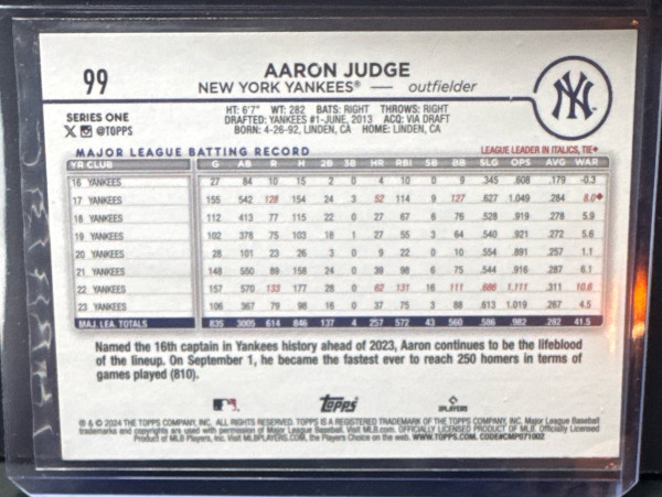 Aaron Judge 2024 Topps #99 New York Yankees