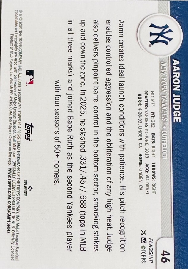 Solid pickup for Yankees collectors or Aaron Judge fans.