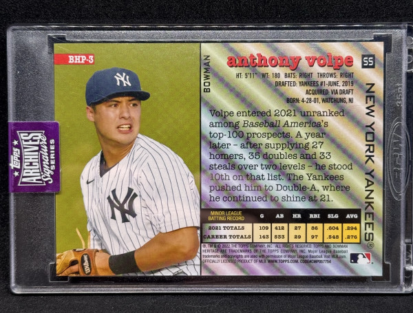 Anthony Volpe 2025 Topps Archives Signature Series Auto 04/10 - 2022 Bowman Heritage #BHP-3