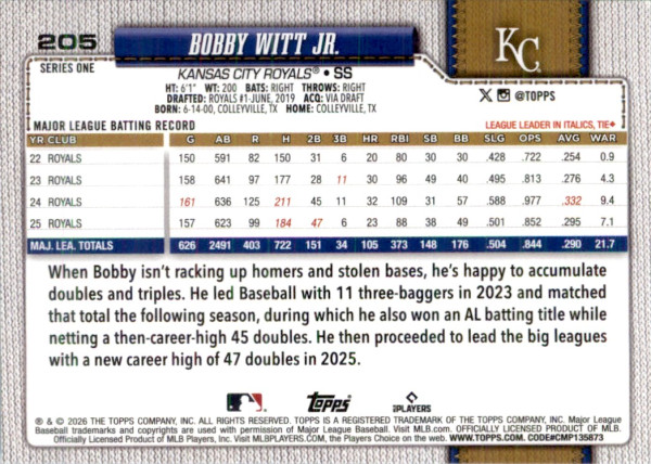 Bobby Witt Jr. 2026 Topps #205 Blue Polka Dot Kansas City Royals