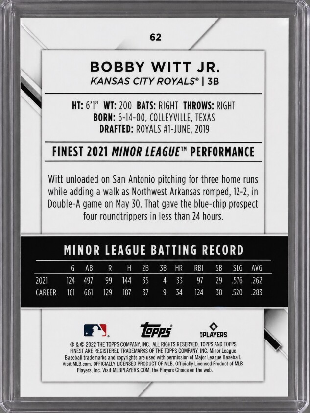 Bobby Witt Jr. Rookie card from 2022 Topps Finest