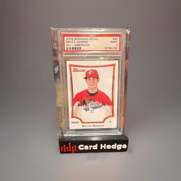 The product is a 2009 Bowman Aflac All-American trading card featuring Bryce Harper, a renowned player in Major League Baseball. This original card is made of card stock and is part of the standard size for sports trading cards. It is a non-autographed insert with the card number BH and belongs to the 2009 Bowman set. The card showcases Harper as an Aflac All-American player, representing either the Washington Nationals or Philadelphia Phillies teams in the MLB. This collectible item is a valuable piece for fans and collectors of baseball memorabilia.