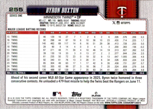 Byron Buxton 2026 Topps #255 Polka Dot Minnesota Twins