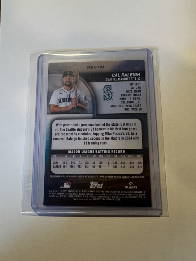 CAL RALEIGH GOLD /50 2025 Stadium Club On Card Autograph