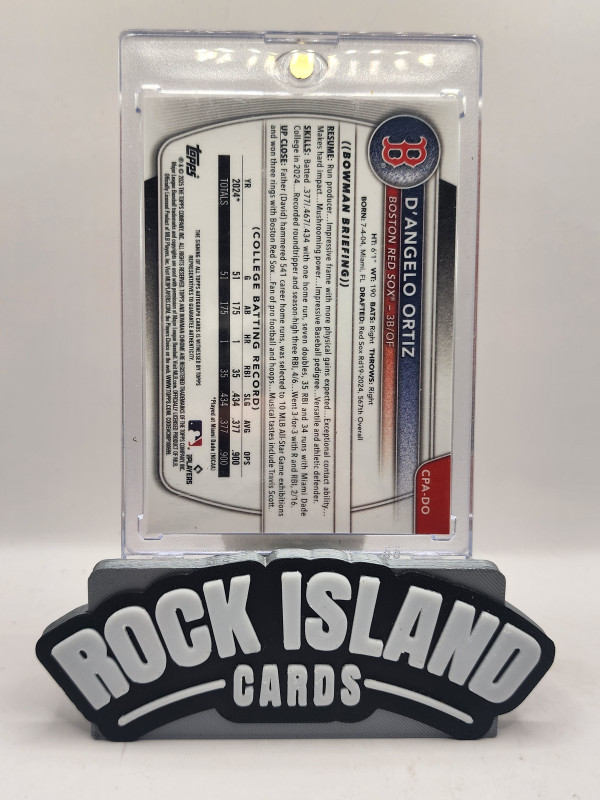 You are purchasing a D'Angelo Ortiz 2024 Bowman Chrome #CPA-DO Orange Shimmer Refractor 14/25. You will receive the exact item in the photographs. Thank you for looking.