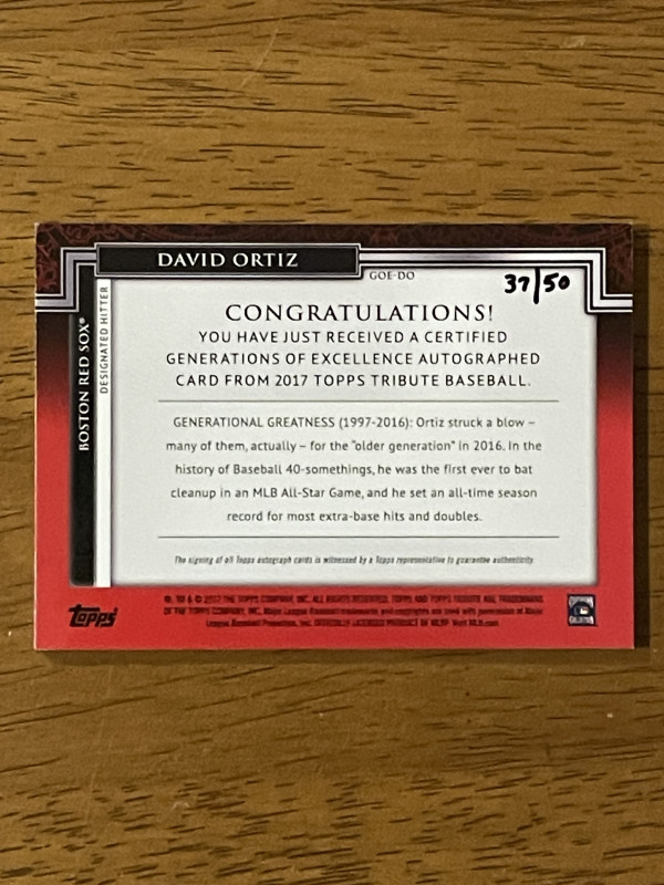 David Ortiz 2017 Topps Tribute purple auto #37/50