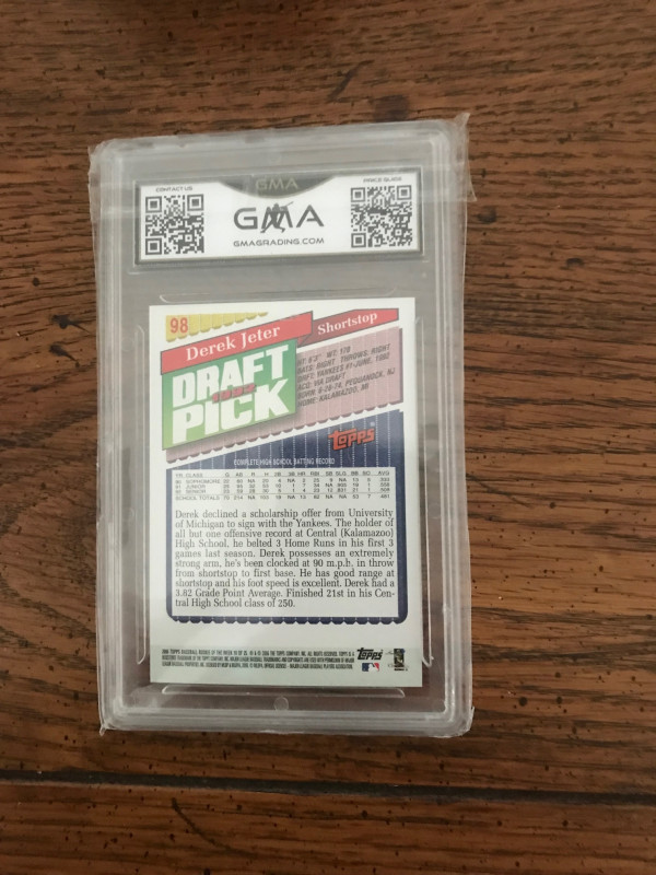 2006 Derek Jeter Topps Baseball Card. Graded GMA 10. Gem Mint Condition.