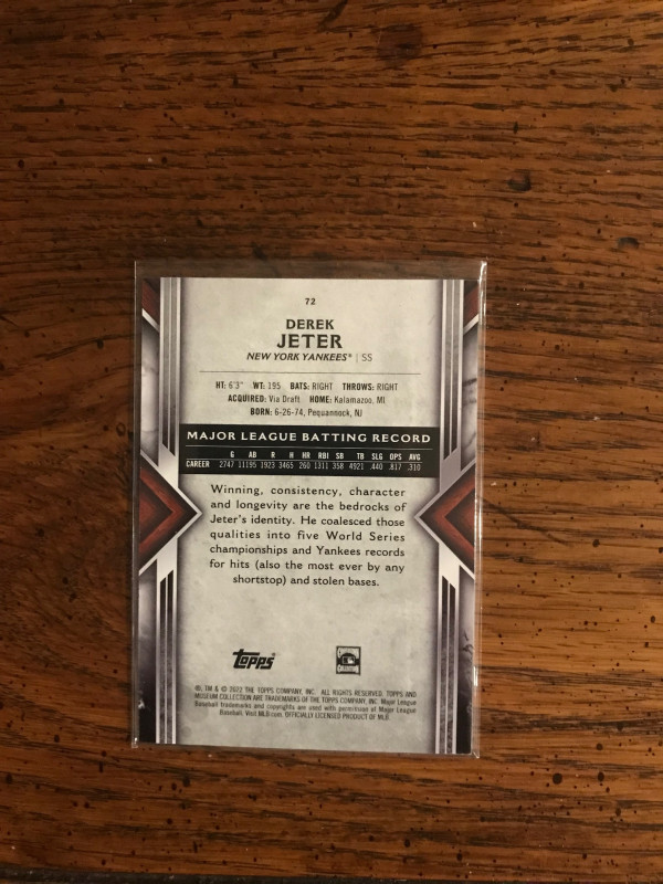 Derek Jeter 2022 Topps Museum Baseball Card. Mint Condition.