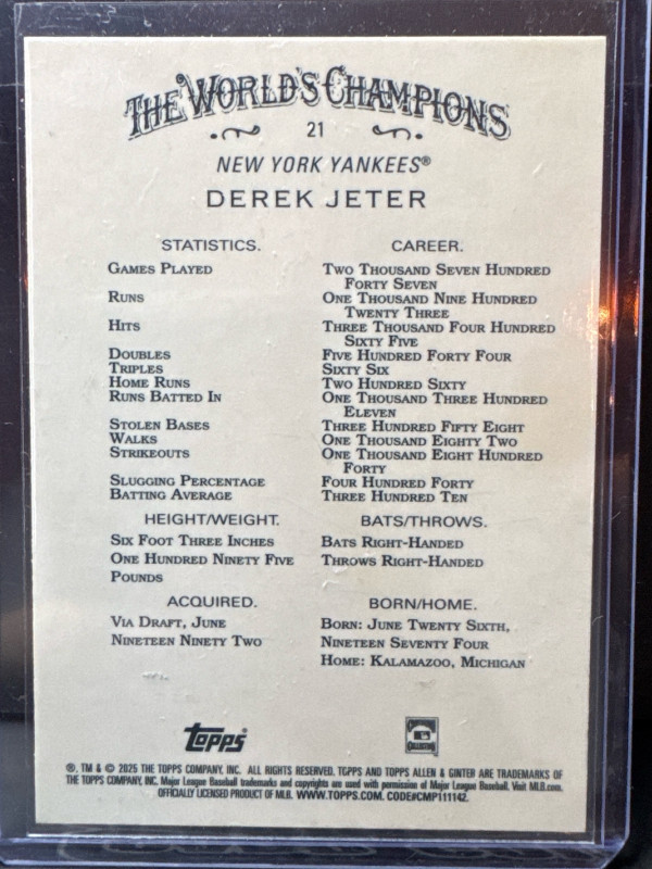 DEREK JETER 2025 Topps Allen & Ginter Baseball Xfractor SP YANKEES Case Hit