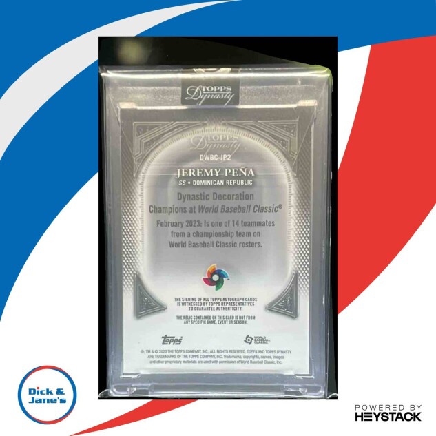You are purchasing a Dynasty Jeremy PEÑA #DAPB-JP2 Autographed Patch Design Variations. You will receive the exact item in the photographs. Thank you for looking.