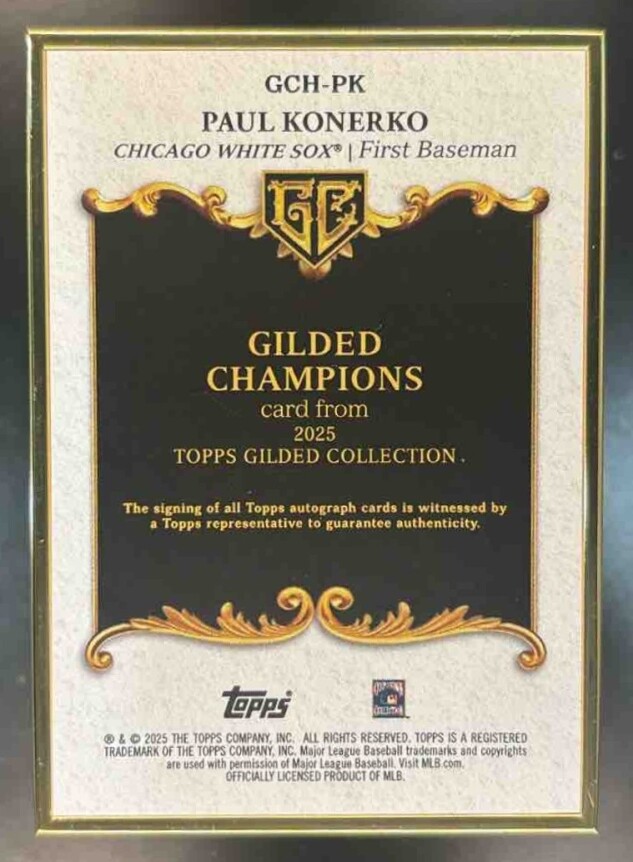 You are purchasing a Gilded Collection Paul Konerko #GCH-PK Gilded Champions Autographs. You will receive the exact item in the photographs. Thank you for looking.