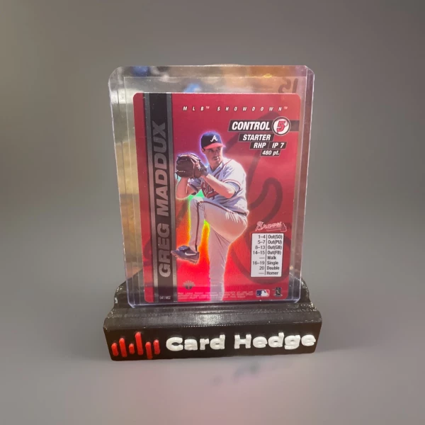 The product is a 2000 MLB Showdown Foil 1st Edition trading card featuring baseball player Greg Maddux from the Atlanta Braves. Manufactured by Wizards of the Coast in the United States, the card is part of the 2000 MLB Showdown set and is made of card stock material. As a standard-sized sports trading card, it is an original edition with a foil finish, making it a collectible item for fans of Major League Baseball and sports memorabilia enthusiasts.