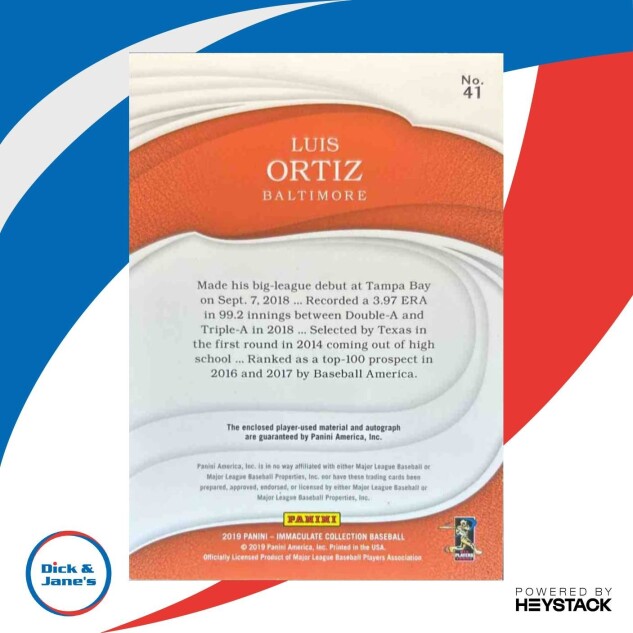 You are purchasing a Immaculate Collection Luis Ortiz #41 Base. You will receive the exact item in the photographs. Thank you for looking.
