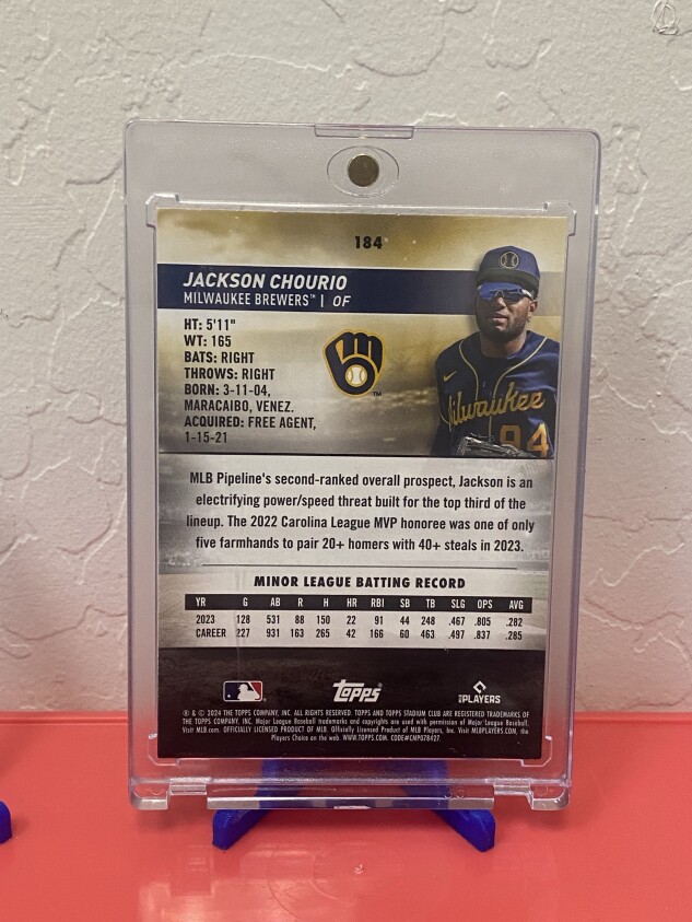 2024 Topps Stadium Club Jackson Churio RC Pink Refractor card #184