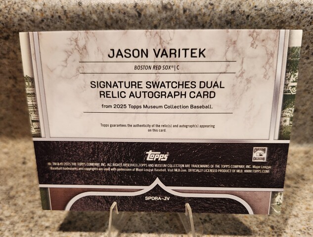 2025 TOPPS MUSEUM JASON VARITEK GAME USED DUAL RELIC AUTOGRAPH /20.