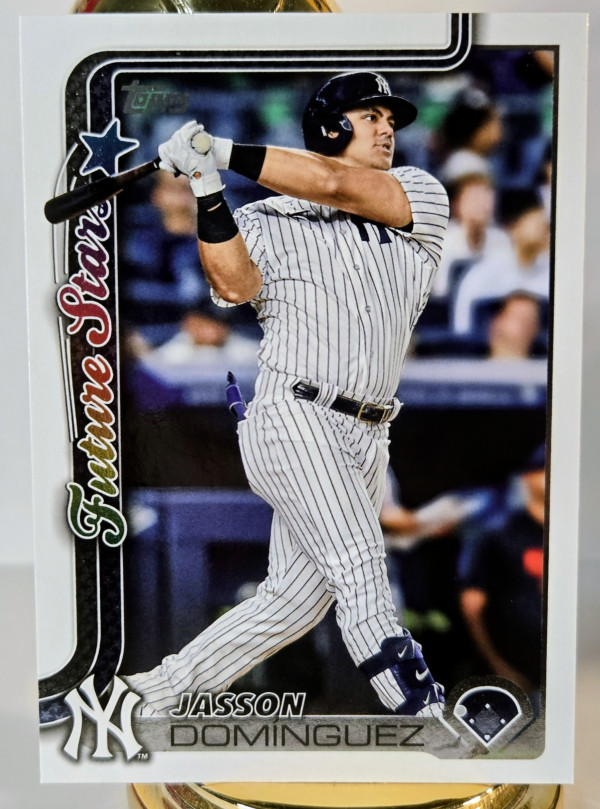 The product is a 2025 Topps Series 2 Future Stars trading card featuring baseball player Jasson Dominguez from the New York Yankees. This sports trading card is part of the base set for the 2025 season and is numbered 590. The card is manufactured by Topps and is a valuable collectible for fans of Major League Baseball looking to add a piece of memorabilia to their collection.