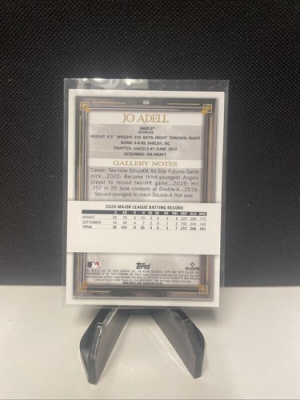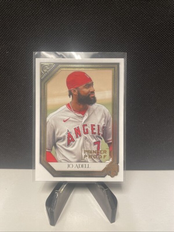 This is a rare and highly sought-after Jo Adell 2021 Topps Gallery #95 Printer Proof RC trading card. This card is an original and comes from the Topps manufacturer. It features a parallel/variety design and is made of high-quality card stock material.