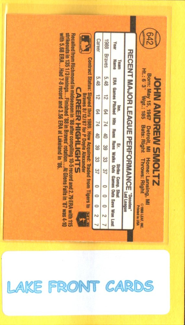 John Smoltz #642 [Rookie] 1989 Donruss