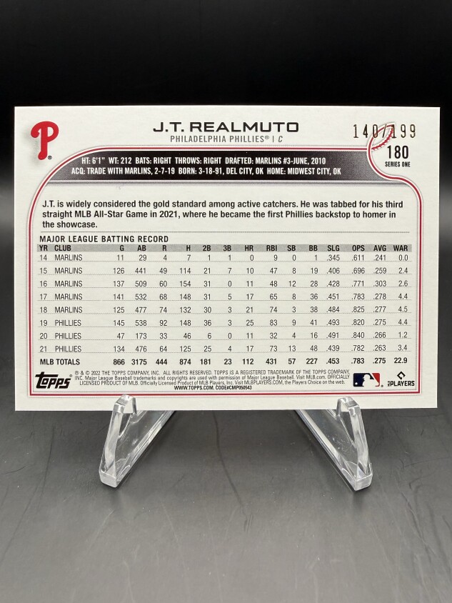 J.T. Realmuto 2022 Topps Red Foilboard 140/199 #180