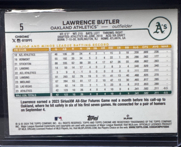 Lawrence Butler 2024 Topps Chrome - #5 RayWave Refractor (RC) Athletics