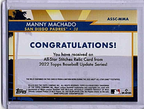 Manny Machado - 2022 Topps Update Series All-Star Stitches #ASSC-MMA (MEM)