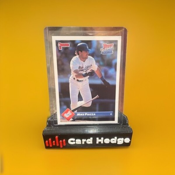 The product is a standard-sized 1993 Donruss Mike Piazza Rated Rookie trading card. This baseball card features the Hall of Famer from his rookie season with the Los Angeles Dodgers. Manufactured by Donruss in the United States, this original card is a sought-after collectible for fans of Major League Baseball. The card is not autographed and is considered a valuable addition to any sports trading card collection.