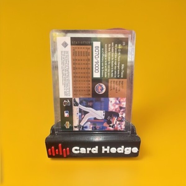 The product is a 1998 Upper Deck SPx baseball trading card featuring Mike Piazza of the New York Mets. This particular card is a Bronze parallel variety, numbered to 9000. Made of card stock and manufactured in the United States, it is an original piece from the 1998 SPx set by Upper Deck. With its serial numbering and limited print run, this card is a collectible item for fans of Major League Baseball and sports trading cards in general.
