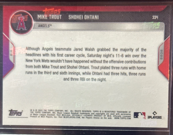 Mike Trout & Shohei Ohtani - 2022 MLB Topps Now Card 334 - Print Run: 3103
