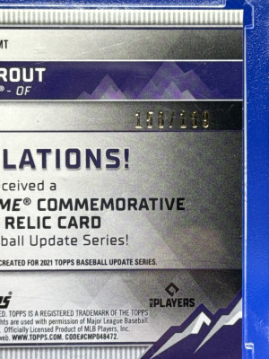 Sleeve Patch Relic card of Mike Trout All Star Game 2021