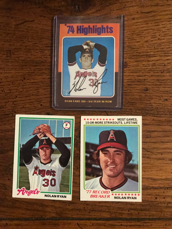 Three different Nolan Ryan Topps Baseball Cards. Very Good Condition.