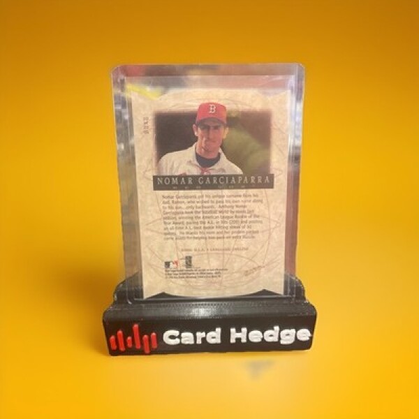 The Nomar Garciaparra 1998 Metal Universe Universal Language #10 trading card is a collectible item featuring the former MLB player from the Boston Red Sox. This card is part of the 1998 Metal Universe set by SkyBox, with a die-cut variety design and made of card stock material. It is an original insert card with English language text, representing the Universal Language theme. This standard-sized sports trading card is a valuable addition for fans of baseball memorabilia and collectors of sports cards.