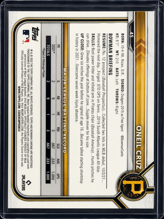 Oneal Cruz Rookie Card 2022 Bowman Chrome