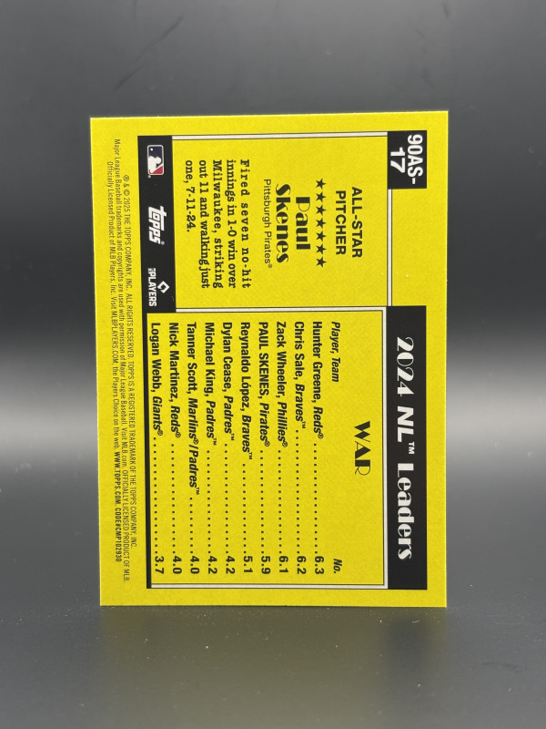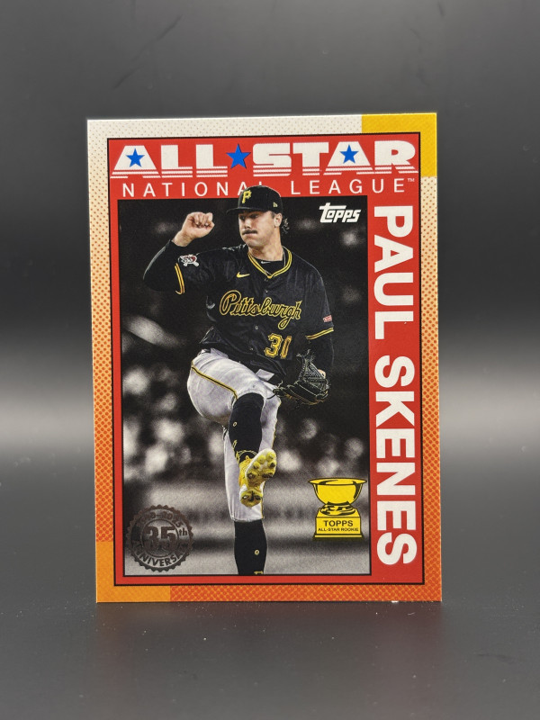 Paul Skenes red variation 1990 all stars insert, pulled from 2025 Topps Series 2.