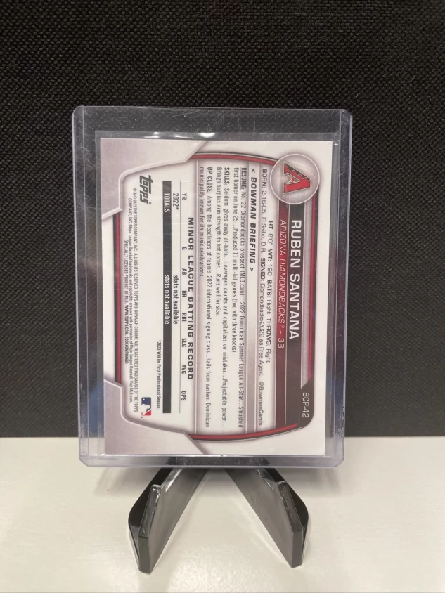 This Ruben Santana 2023 Bowman Chrome Prospects #BCP-42 1st Bowman Chrome trading card is a must-have for any baseball fan and collector. The card features Ruben Santana, a player for the Arizona Diamondbacks in the Major League Baseball (MLB) and is made of high-quality card stock material.