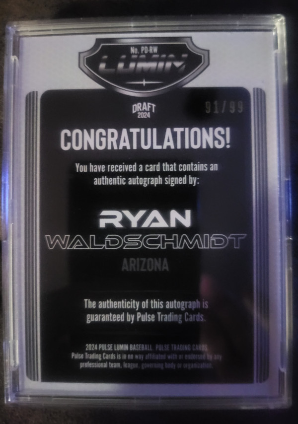RYAN WALDSCHMIDT #PD-RW 2024 Pulse Lumin Silver On Card Auto 91/99