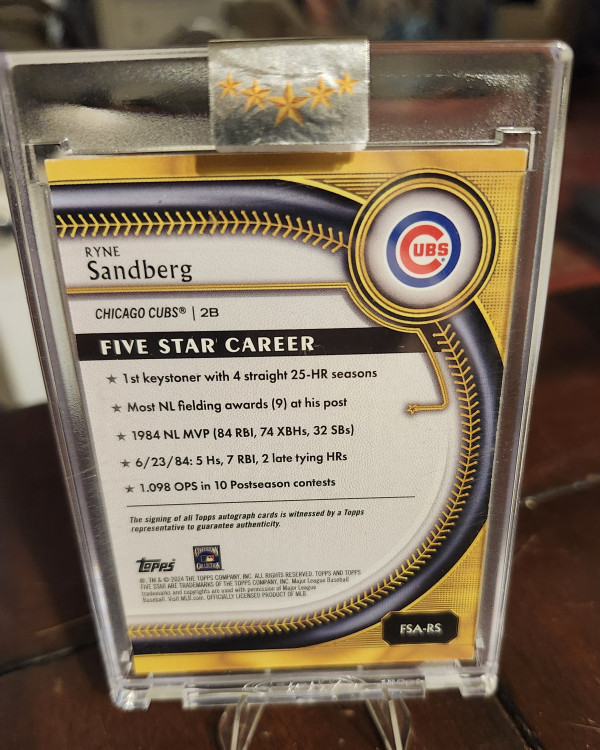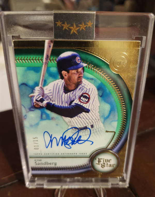 2025 TOPPS FIVE STAR RYNE SANDBERG ON CARD AUTO GREEN FIRST ON PRINT 1/15.