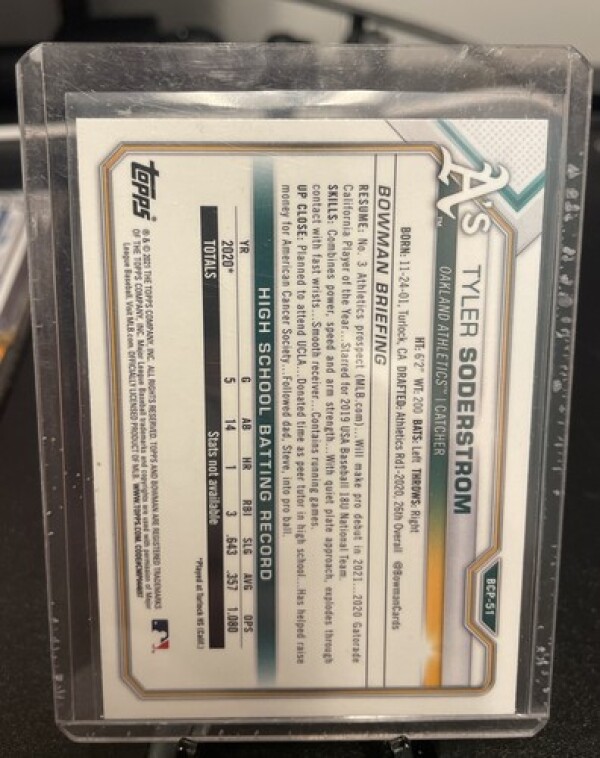 Tyler Soderstrom 2021 Bowman Chrome Prospects Mega Box Mojo Refractor #BCP-51.