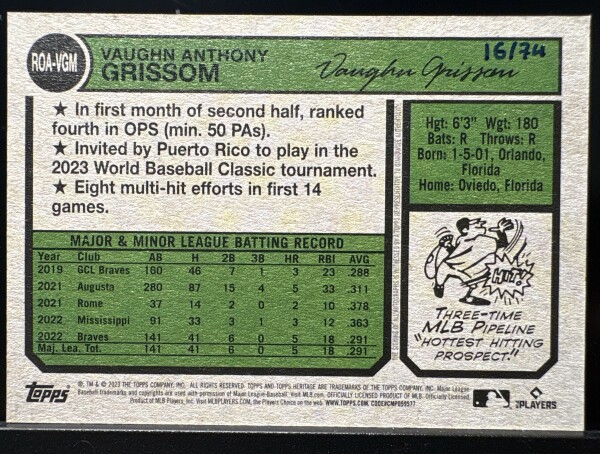 Vaughn Grissom, 2024 Topps Heritage, Rookie, Auto /74