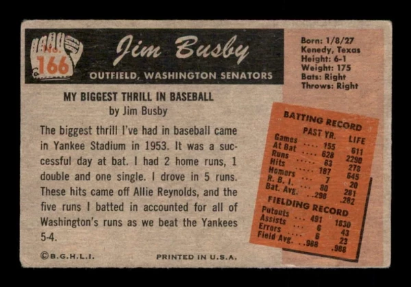 Vintage 1955 Bowman #166 Jim Busby VG/VGEX
