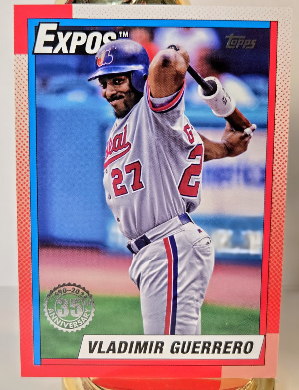 The product is a 2025 Topps Series 1 trading card commemorating the 35th anniversary of Vladimir Guerrero as a member of the Montreal Expos. This baseball card, featuring set number T90-48, is part of the 1990 Topps Baseball insert set for the 2025 season. Manufactured by Topps, this card showcases Guerrero as a standout player in Major League Baseball. A collectible item for fans of the Montreal Expos and baseball enthusiasts alike, this card celebrates the legacy of a legendary athletic figure.