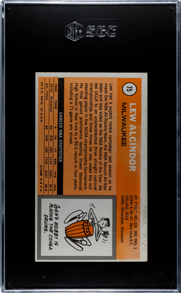 You are purchasing a 1970 Topps Lew Alcindor #75 SGC 4. You will receive the exact item in the photographs. Thank you for looking.