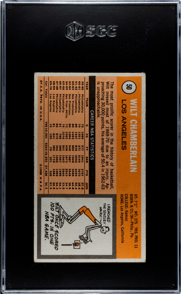 You are purchasing a 1970 Topps Wilt Chamberlain #50 SGC 1.5. You will receive the exact item in the photographs. Thank you for looking.