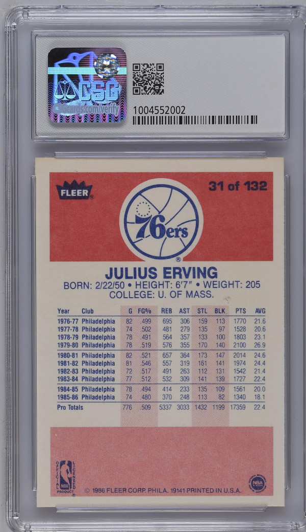 You are purchasing a 1986-87 Fleer Julius Erving #31 CGC 8.5. You will receive the exact item in the photographs. Thank you for looking.