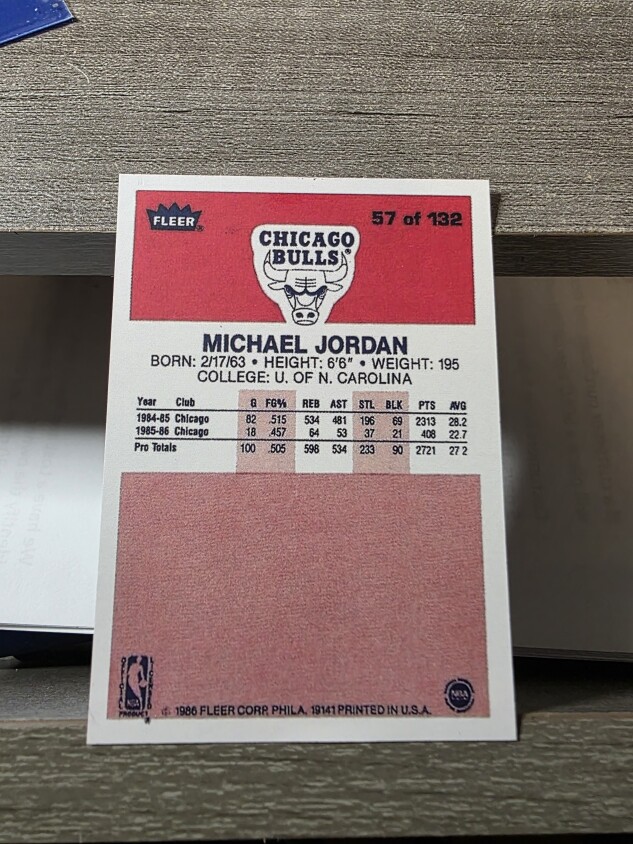 1986 Fleer Michael Jordan Reprint